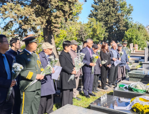 2026年3月30日, 清明节来临之际,驻阿尔巴尼亚大使庞春雪率队赴地拉那沙拉公墓,缅怀张宝玉、李德雄和彭桂文三位烈士。阿中友协主席纳诺等出席活动。
